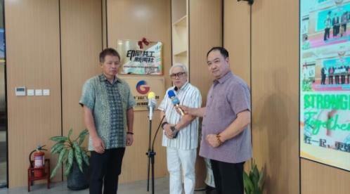 图说:陈日铃董事长、印尼托马斯社会论坛(智囊智库)主席HANDOYO接受印尼共工社记者采访