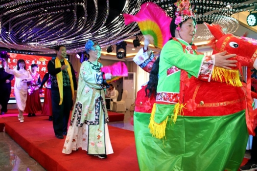 总结与展望之余,团拜会更是欢乐的海洋。一场精心准备的文艺演出,将现场气氛推向一个又一个高潮。节目形式多样,精彩纷呈:开场歌舞《贺新春》瞬间点燃了全场热情;经典歌曲《在那桃花盛开的地方》唱出了对美好家园的深情眷恋;飒爽的《水兵舞》展现了昂扬向上的精神风貌;深情的诗朗诵抒发了对时代与生活的热爱;韵味十足的豫剧清唱带来了浓郁的中原风情;传统《舞龙表演》威风凛凛,彰显着中华文化的生生不息;最后,热闹欢腾的《大秧歌》扭出了红红火火的年味,也扭出了人民群众对幸福生活的满满信心。每一个节目都凝聚着表演者的心血,也赢得了在场观众的阵阵掌声与喝彩,充分展现了城乡文化团队蓬勃的生命力和丰富的创作力。