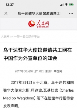 2017年3月,共工日报作为乌干达驻华大使馆在中国地区的指定宣传媒体,为促进中乌经贸关系、增强两国人民传统友谊作出过积极贡献。长期以来,共工日报牢牢坚持正确的舆论导向,得到全国各地党委、政府以及政法机关等单位的高度认可和支持。